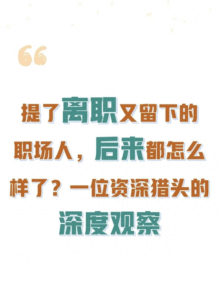 凤凰彩票官方网站 提了去职又留住的东说念主, 其后皆被边际化了? 一位资深猎头的诚意话